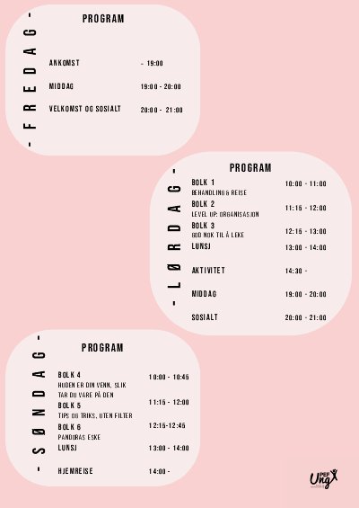 Gjennom inspirerende bolker om selvtillit, organisasjon og helse, og aktiviteter som buldring og gaming, får du oppleve en helg med både læring og glede.