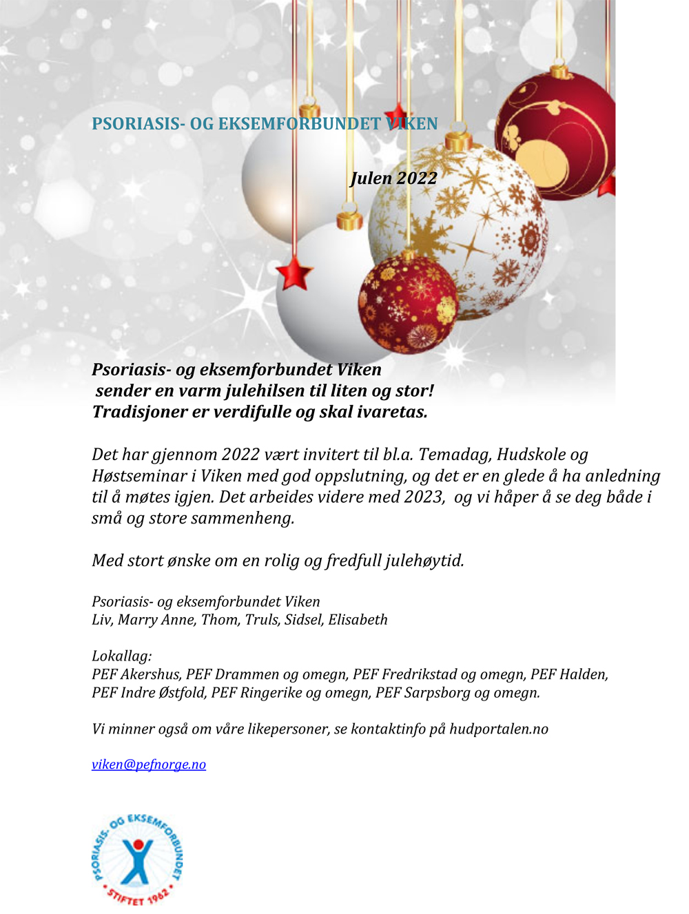 Psoriasis- og eksemforbundet Viken sender en varm julehilsen til liten og stor!