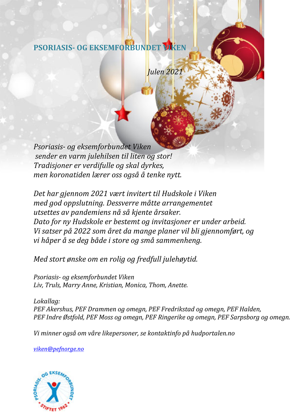 Psoriasis- og eksemforbundet Viken sender en varm julehilsen til liten og stor!